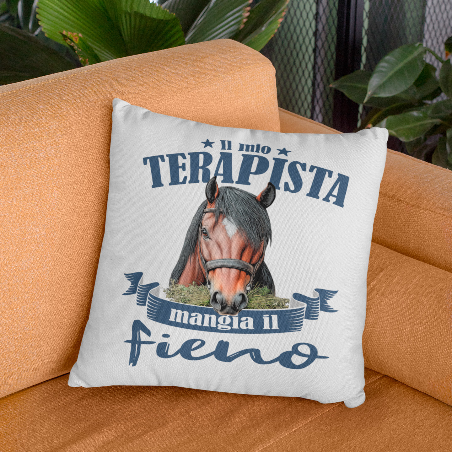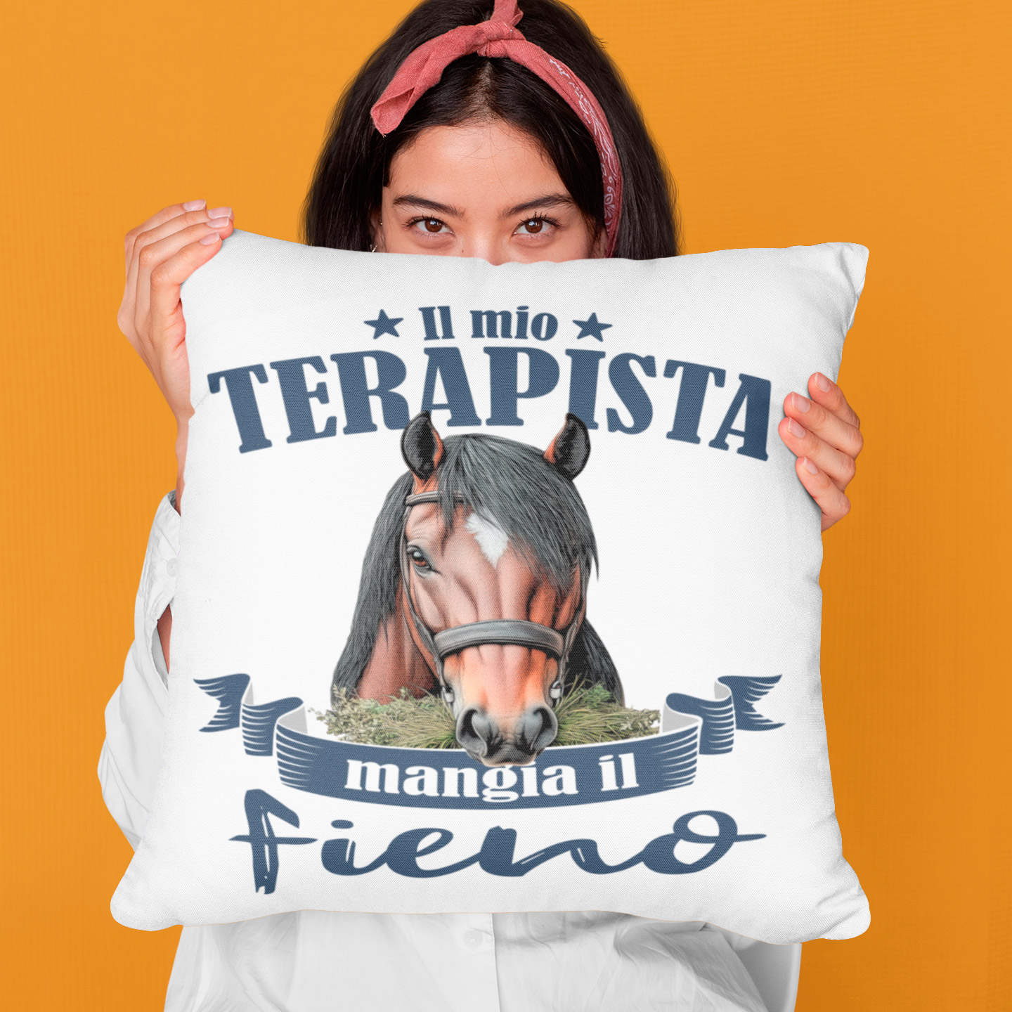 Il mio terapista mangia il fieno! Cuscino!
